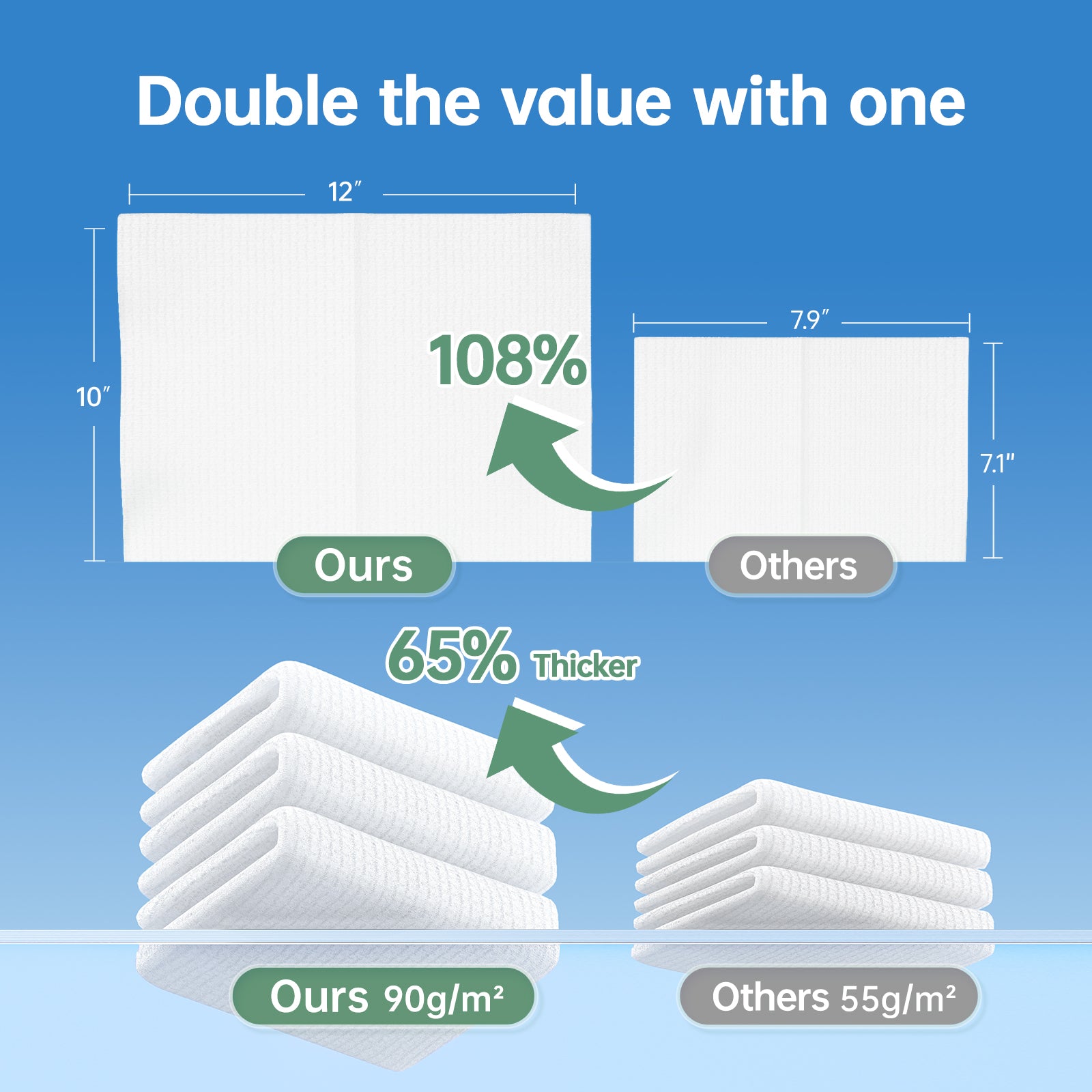 - 【Extra-Large & Highly Absorbent】Measuring 12x10 inches, these XL towels are thicker and more absorbent than standard wipes. They hold up well wet or dry, making them perfect for facial cleansing, drying, and even light household cleaning tasks.